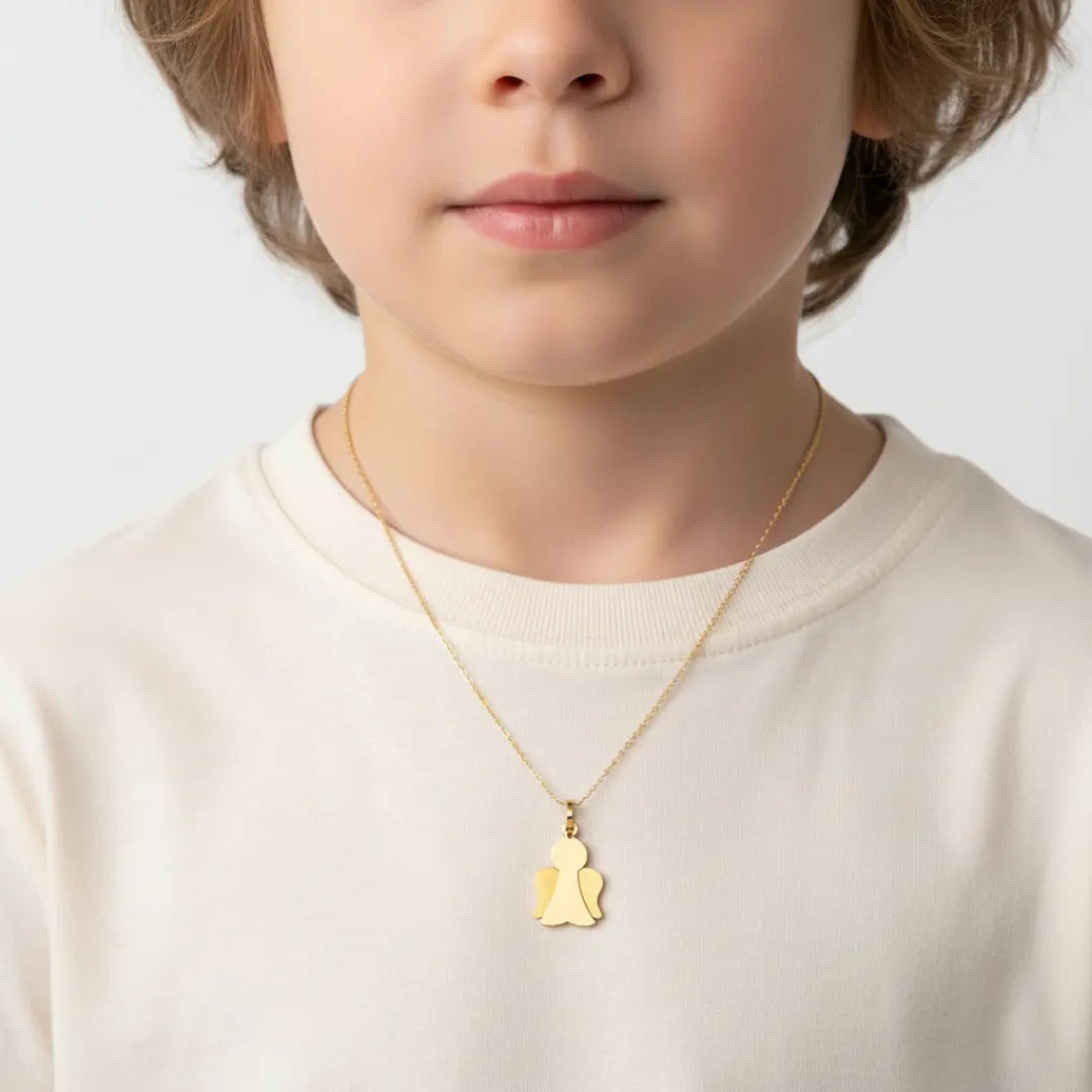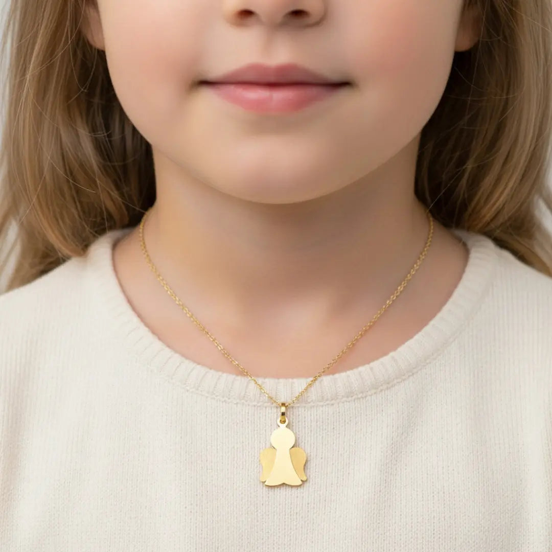 Der Goldanhänger Engel Teilmatt verbindet zeitlose Eleganz mit symbolischer Bedeutung und ist ein liebevolles Geschenk für Kinder. Die Kombination aus mattierten und glänzenden Elementen verleiht diesem Anhänger einen besonderen Charakter. Mit seiner hochwertigen Verarbeitung und spirituellen Symbolik ist er ein Accessoire, das Kinder lange begleiten wird und Freude bereitet.